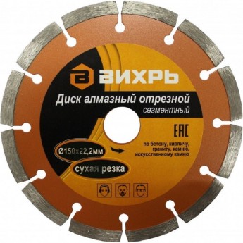 Диск алмазный ВИХРЬ СТАНДАРТ отрезной сегментный 150х22,2 мм, сухая резка