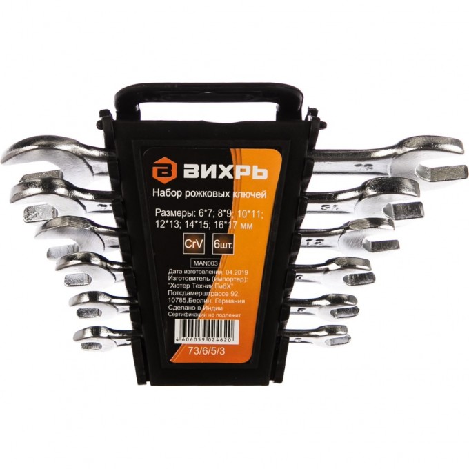 Набор рожковых ключей ВИХРЬ 6 шт 73/6/5/3