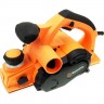 Электродвигатель мощностью 1300 Вт и числом оборотов 15000 об/мин обеспечивает эффективность строгания плоских деревянных поверхностей и фасок. Устройство подойдет для любых стройматериалов: бруса, доски, горбыля. Ширина строгания составляет 110 мм. Глубину строгания можно плавно регулировать от 0 до 3,5 мм путем поворота рукоятки. Шаг регулировки равен 0,25 мм. Совмещение функций регулировки и дополнительной опоры в одной шарообразной ручке повышает комфортность использования инструмента. Электрический рубанок оснащен блокировкой для устранения риска случайного запуска двигателя. В случае длительного непрерывного строгания кнопку выключателя можно зафиксировать, чтобы не удерживать ее пальцем постоянно. Устройство оснащено патрубком для отведения пыли. Стружка отбрасывается в сторону. Инструмент комплектуется ножами с двухсторонней заточкой. В случае затупления одной стороны лезвие можно перевернуть и продолжить работу. В целях улучшения качества производимых работ рекомендуется регулярно производить заточку или замену ножей новыми.